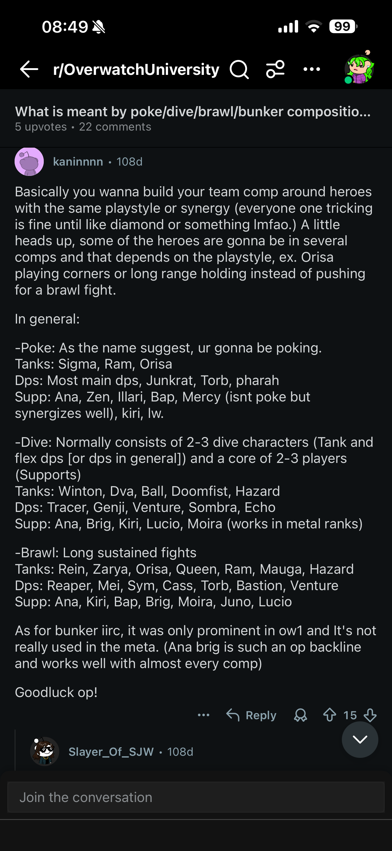 Un screen d’un com Reddit sur les compo de team Overwatch.
